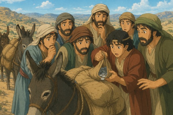 27.한 사람이 여관에서 나귀에게 먹이를 주려고 자루를 풀고 본즉 그 돈이 자루 아귀에 있는지라