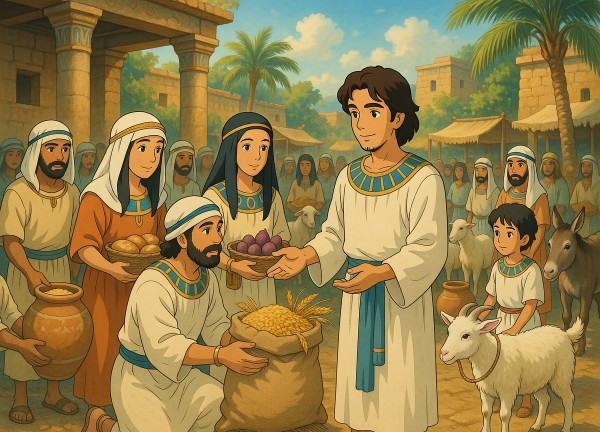 17.그들이 그들의 가축을 요셉에게 끌어오는지라 요셉이 그 말과 양 떼와 소 떼와 나귀를 받고 그들에게 먹을 것을 주되 곧 그 모든 가축과 바꾸어서 그 해 동안에 먹을 것을 그들에게 주니라