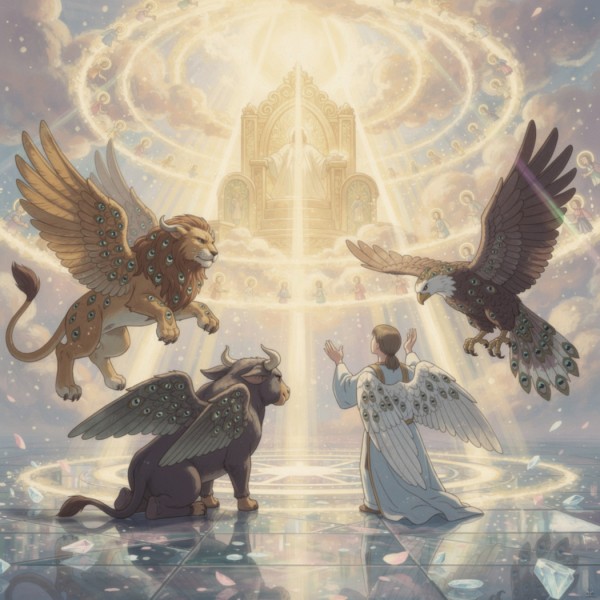14.그룹들에게는 각기 네 면이 있는데 첫째 면은 그룹의 얼굴이요 둘째 면은 사람의 얼굴이요 셋째는 사자의 얼굴이요 넷째는 독수리의 얼굴이더라