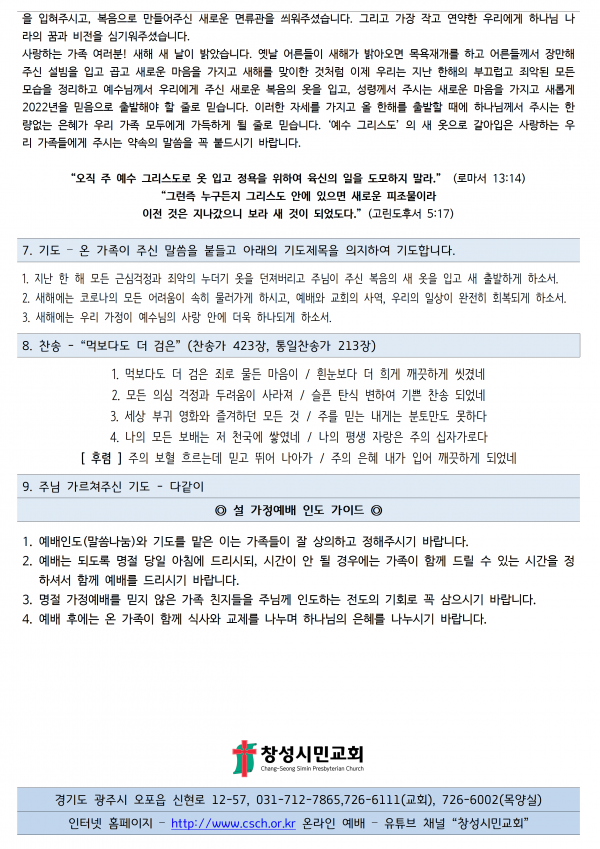 새해의 첫 날을 온 가족과 함께 예배로 영광돌리시기 바랍니다.